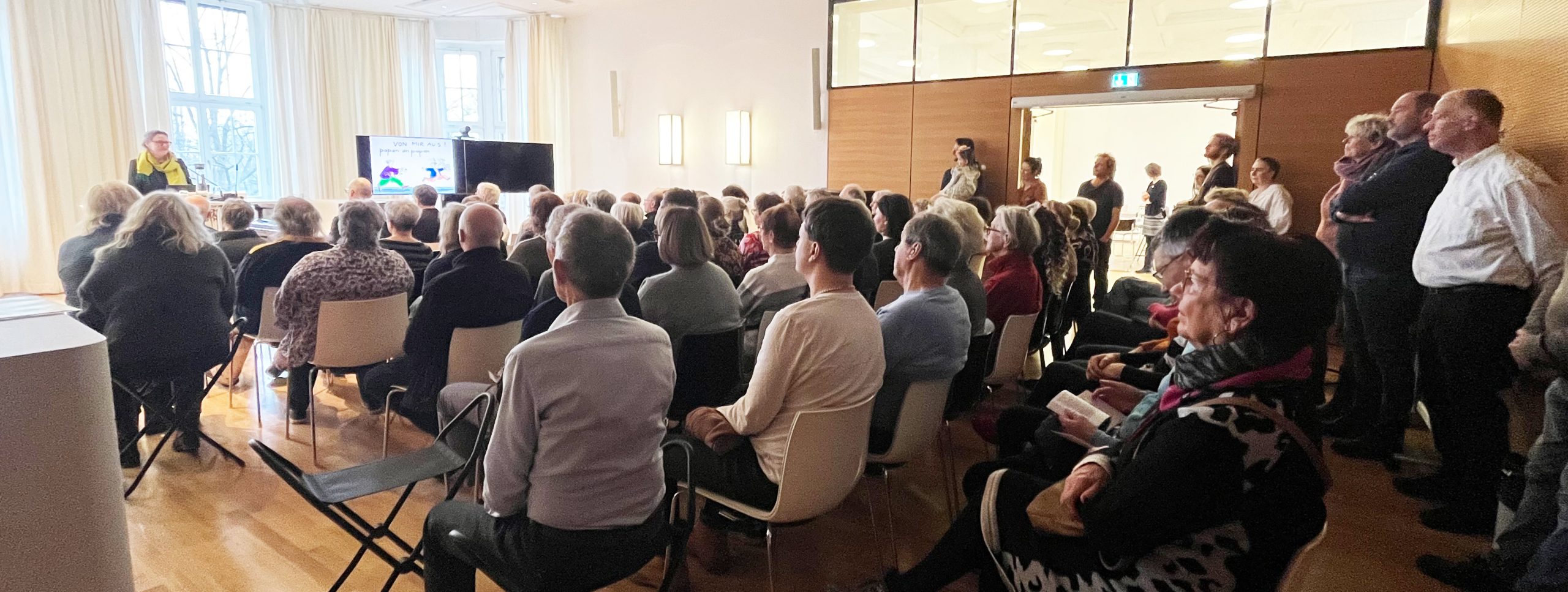 Im Laufe der Ausstellung wurden zehn Kuratorenführungen durch Yvonne Jahns und Peter Kühne mit interessierten Besucher*innen durchgeführt. Ein besonders schöner Abschluss ergab sich durch die Anmeldung eines Kurses „Deutsch als Zweitsprache“ für die letzte Führung im Dezember 2024.